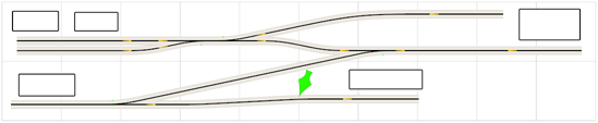 A turnout is needed to switch the two tracks on the left. It was aligned to the top track, then moved right holding down the right-arrow key for a little while.